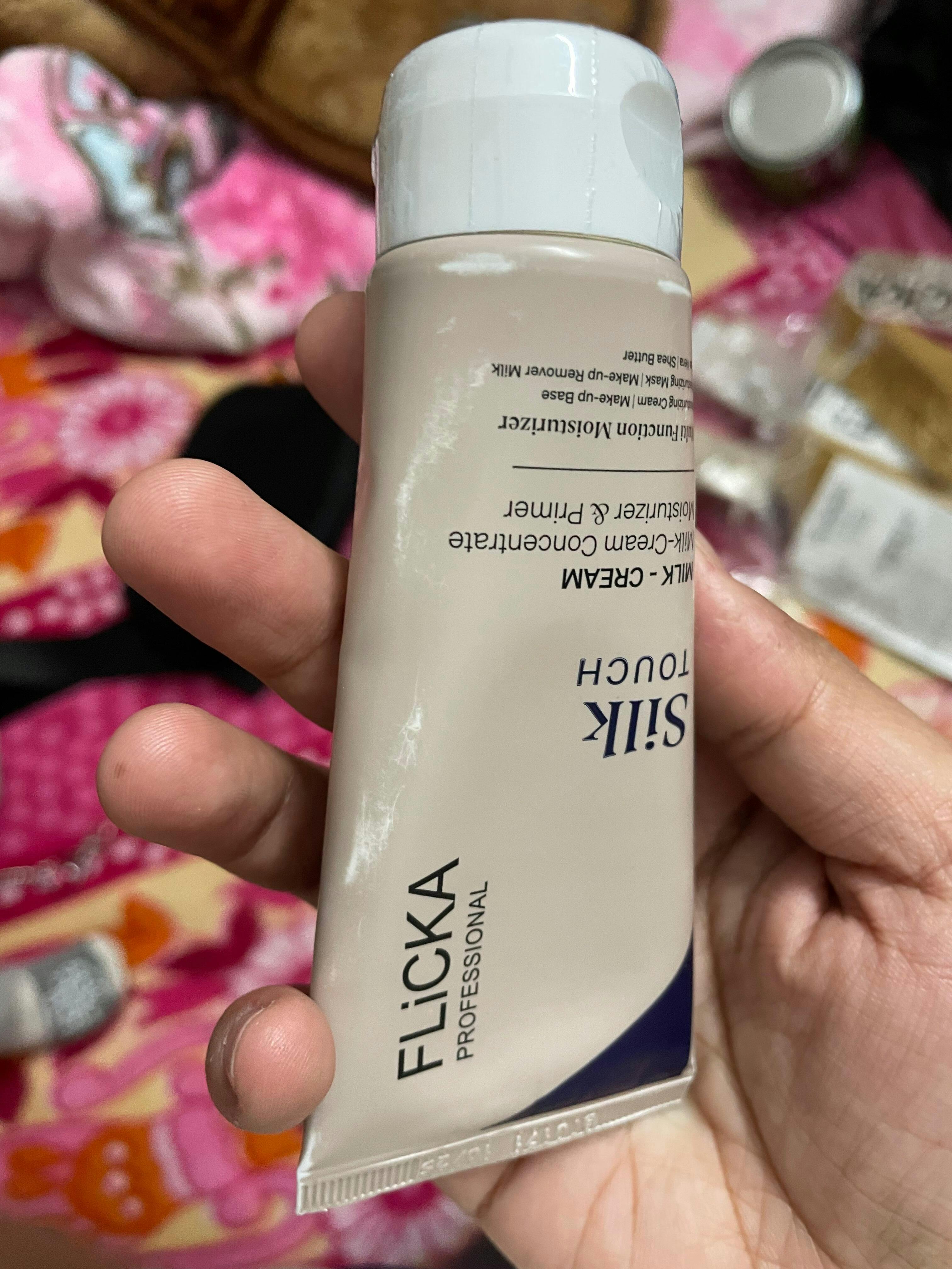 • Take a small amount of Silk Touch Moisturiser & Primer on your fingertips.